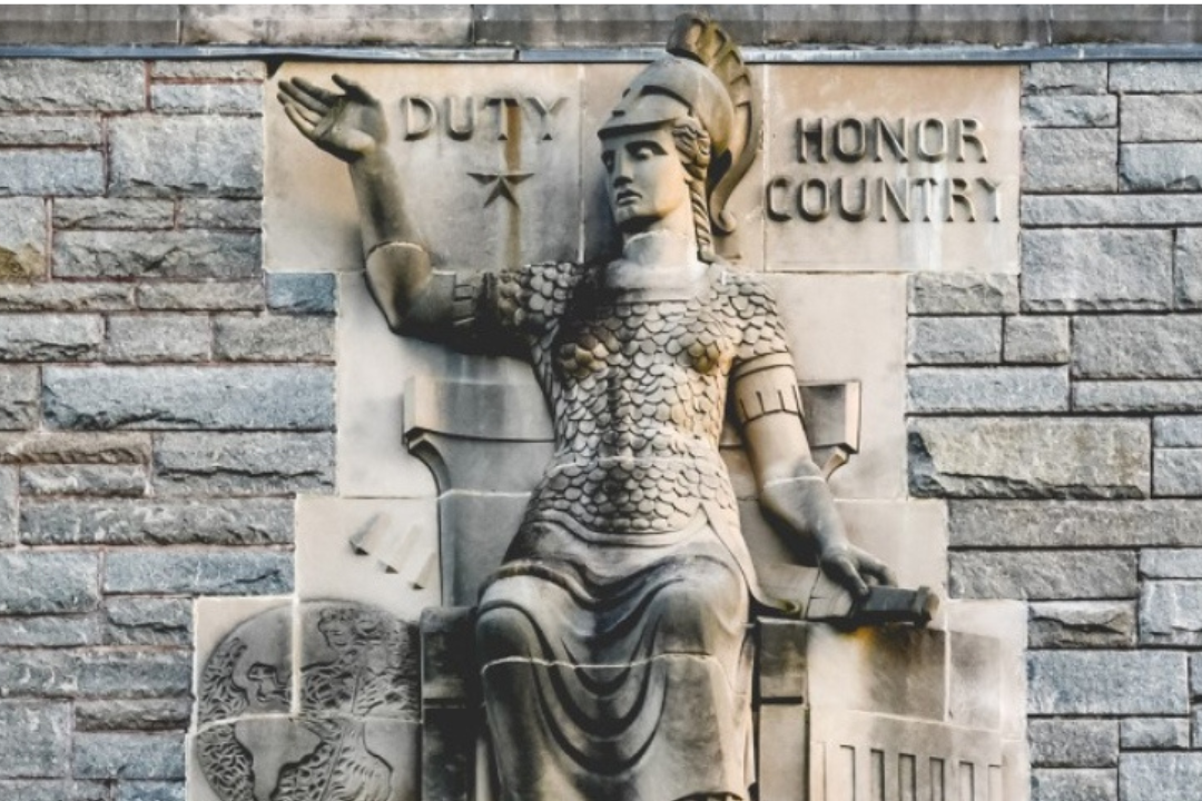 West Point’s coat of arms and motto, “Duty, Honor, Country,” were adopted in 1898 to reflect the academy’s national character, military role, and educational mission. Featuring symbols like a sword, Athena’s helmet, and the American eagle, the design embodies war, wisdom, peace, and patriotism. Since then, the coat of arms has become a lasting emblem of West Point’s ideals and tradition.