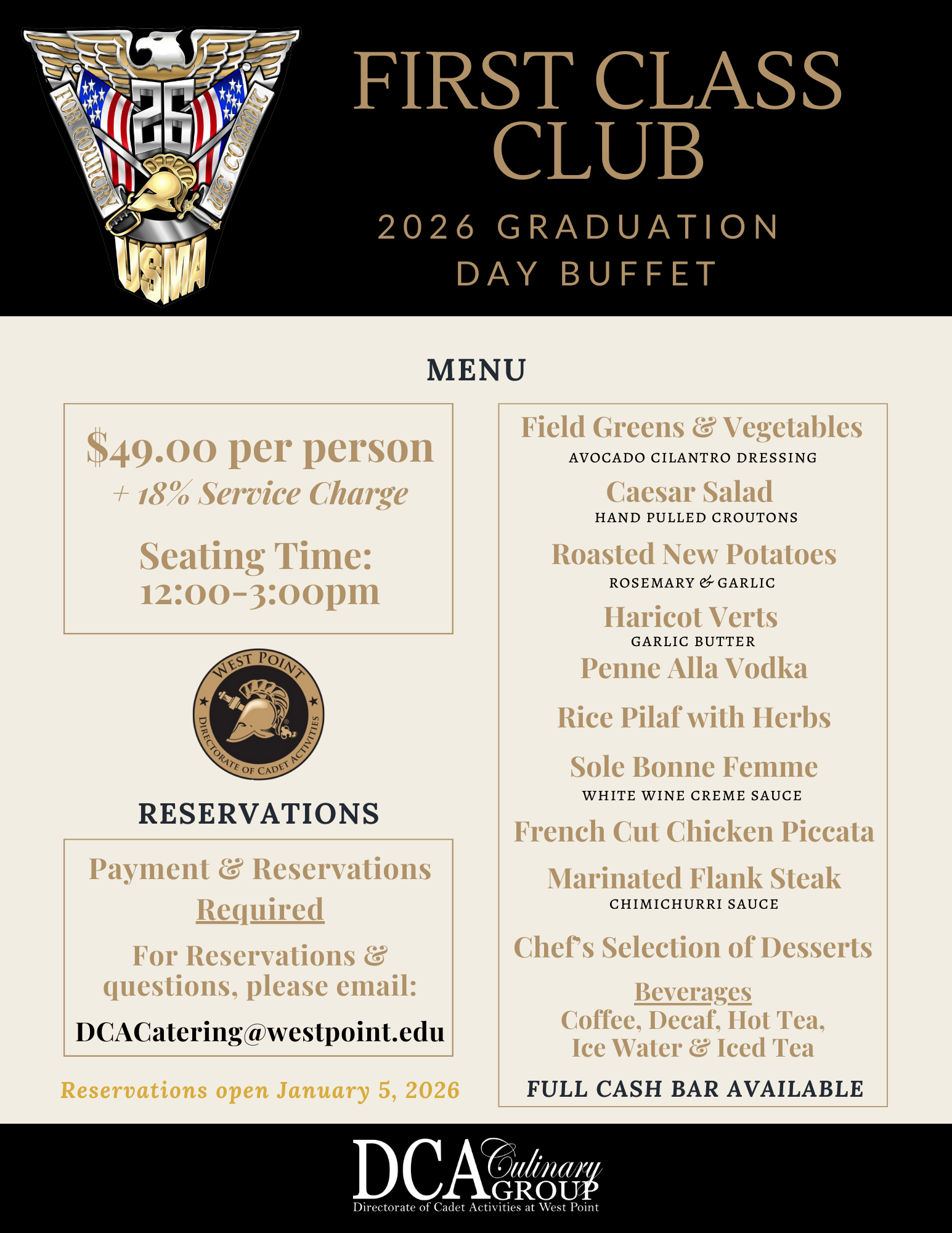 • Cadets are responsible for signing up/paying for guests.