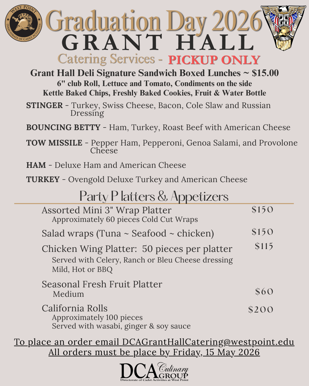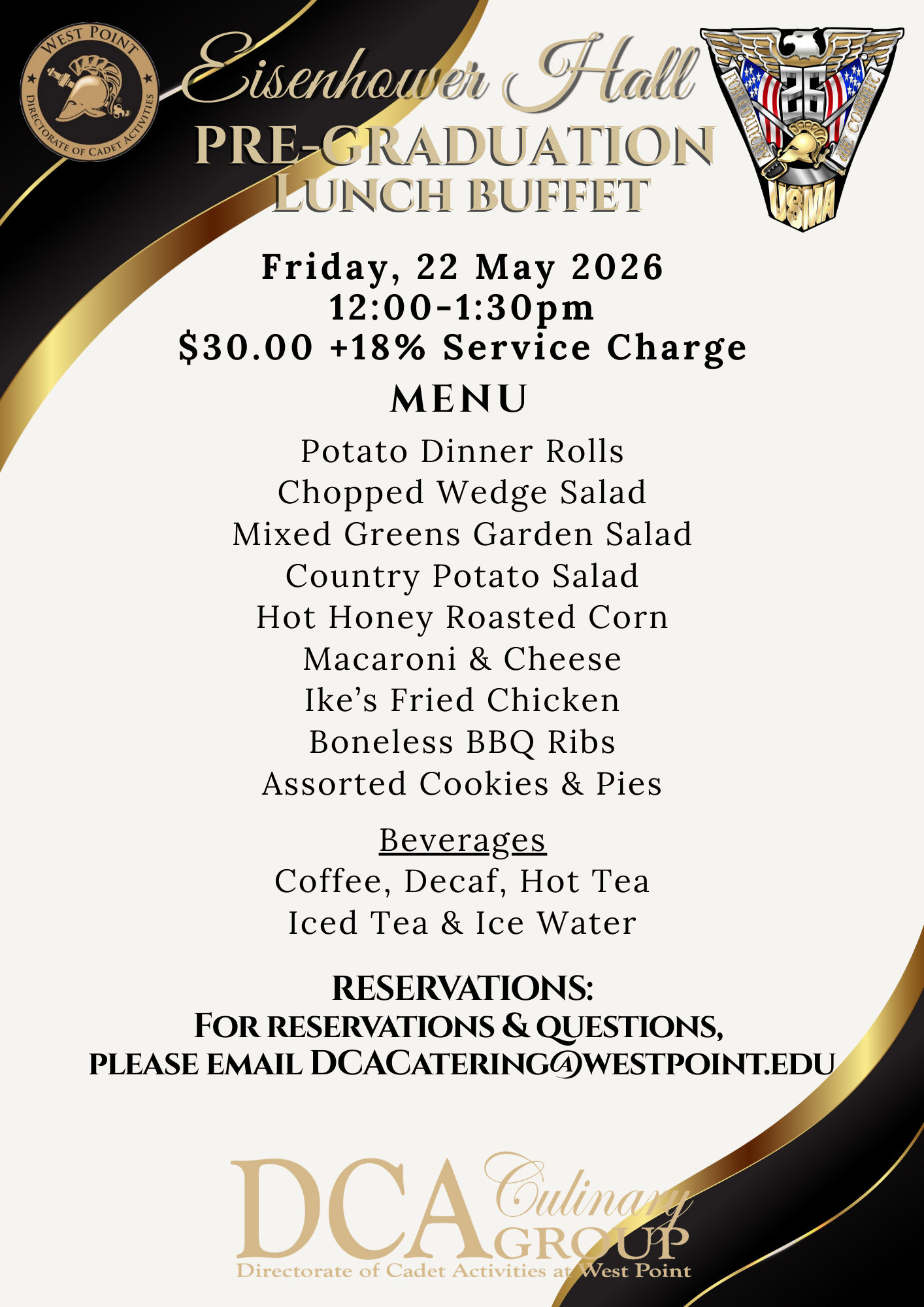 • The banquet will take place at the cadet mess in Washington Hall around 6 p.m.