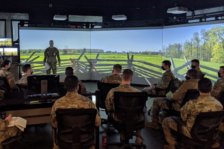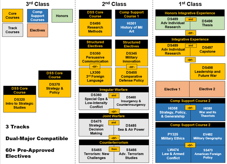Defense & Strategic Studies (DSS) Teaching the Next Generation of Warfighters DSS is an interdisciplinary academic major in which Cadets learn to holistically frame complex strategic problems, develop viable and innovative solutions, and communicate effectively to multiple audiences. DSS educates future leaders to solve complex problems in an uncertain world. DSS Cadets study national policy, military strategy, operational art, and the use of force to understand, analyze and effectively communicate the relation of tactical action to national policy. Choose from three curricular tracks and over 50 pre-approved electives. DSS requires only three mandatory courses and caters to Cadet research interests and preferences. DSS works closely with departments across USMA to provide Cadets with a streamlined process for dual majors and minors. Participate in AIADs with SOCOM, FBI, ATF, DEA, and others. Join our annual staff ride to Germany over spring break and interact with your British, French, and German counterparts. Engage with your peers at other elite institutions like Princeton, Yale, and NYU for crisis simulations, conferences, and symposia. Announcements DSS conducted a virtual Gettysburg Staff Ride in the West Point Simulation Center to introduce cadets to battlefield analysis and the Army Staff Ride program. Pictured is MAJ Matt Schardt leading DSS first-class cadets through a discussion on the first day of the Battle of Gettysburg. Intellectually Preparing Cadets for Conflict DSS Faculty The seven rotating members of the DSS faculty graduate from top-tier universities such as Harvard, Yale, Georgetown, Columbia, Eastern Michigan, Texas A&M, Johns Hopkins, Naval Postgraduate School, and Princeton. Though relatively small, these high-quality faculty earned West Point’s prestigious Agpar Award for Teaching Excellence in both 2013 and 2014. DSS Current Faculty New Instructor Opportunities
