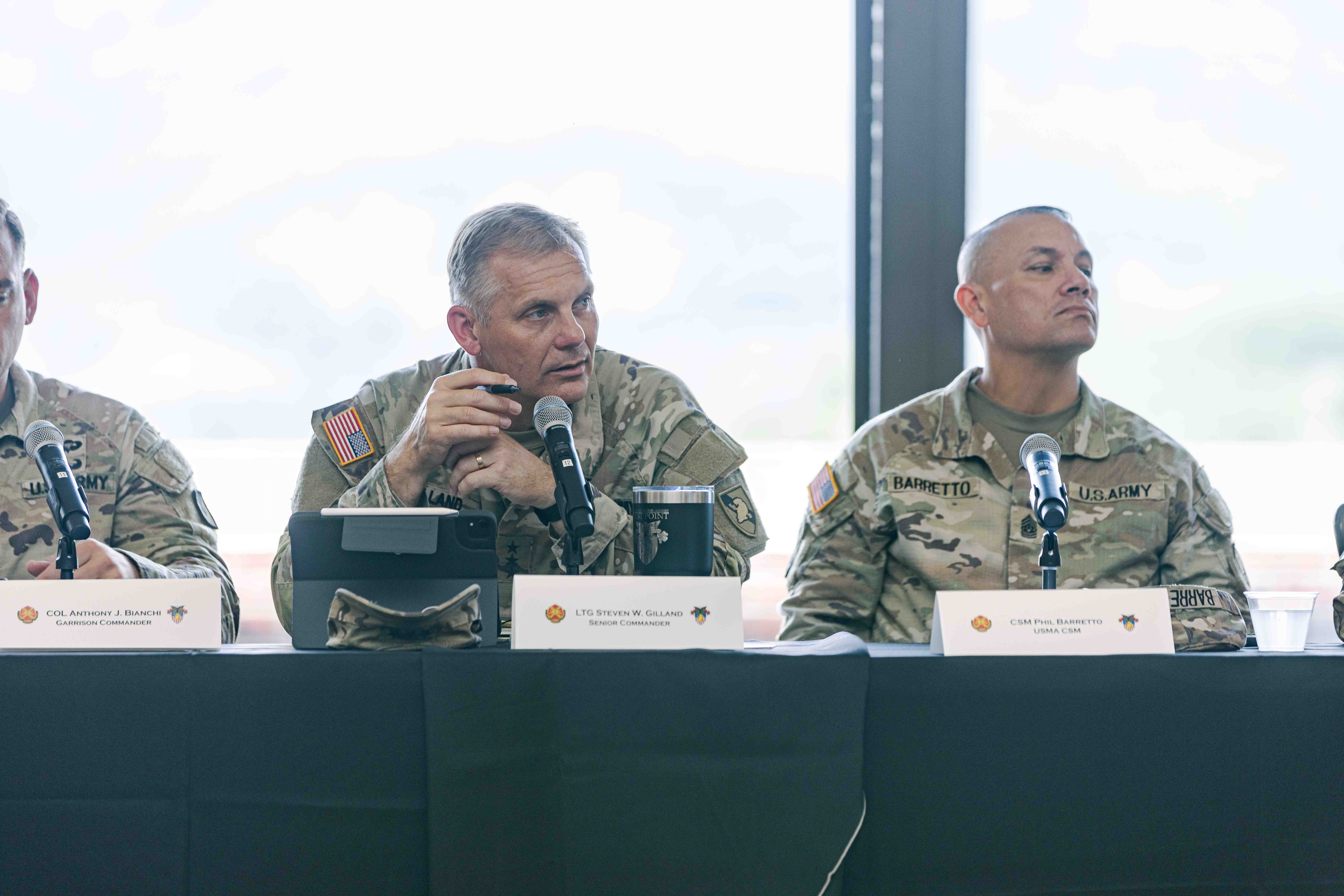 On July 12, community members gathered at the Eisenhower Hall Ballroom to participate in the Community Leader Information Forum. During the CLIF, the Superintendent, Lt. Gen. Steven Gilland; West Point Garrison Commander, Col. Anthony Bianchi; Keller Army Community Hospital Commander, Col. Briana Perata; and the USMA Command Sergeant Major - Command Sgt. Maj. Phil Barretto, conducted a panel discussion along with other leaders of the community.