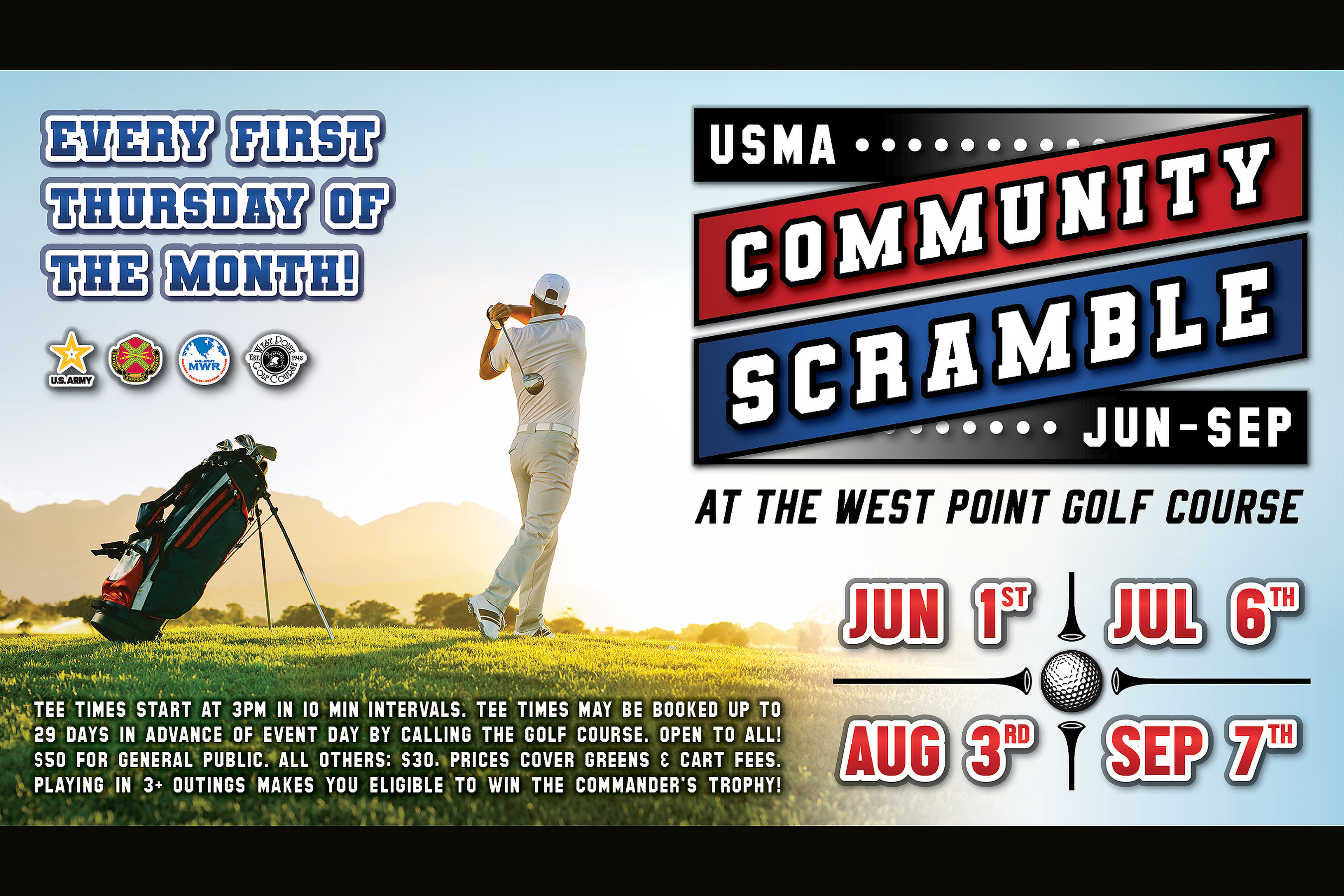 Join us this summer for the return of the U.S. Military Academy Community Scramble, held every first Thursday of the month through September at the West Point Golf Course. Dates are as follows: July 6, Aug. 3 and Sept. 7, 2023. ...